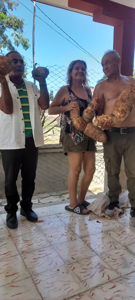 ÉL ya constituye una referencia nacional en acciones dentro de la agricultura urbana que le destacan en el aprovechamiento de todas las potencialidades naturales de su zona para lograr en poco espacio de tierra importantes producciones hortícolas pero, lo que más ha trascendido por estos días es haber logrado dentro de los propios canteros que él ha habilitado, hermosos ejemplares de yuca cuyo grosor superan los veinte centímetros, tal parecen malangas gigantes pues cada una pesa como promedio las quince libras.